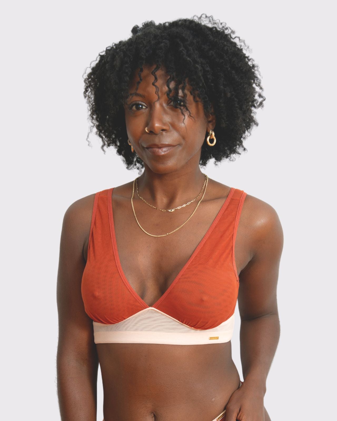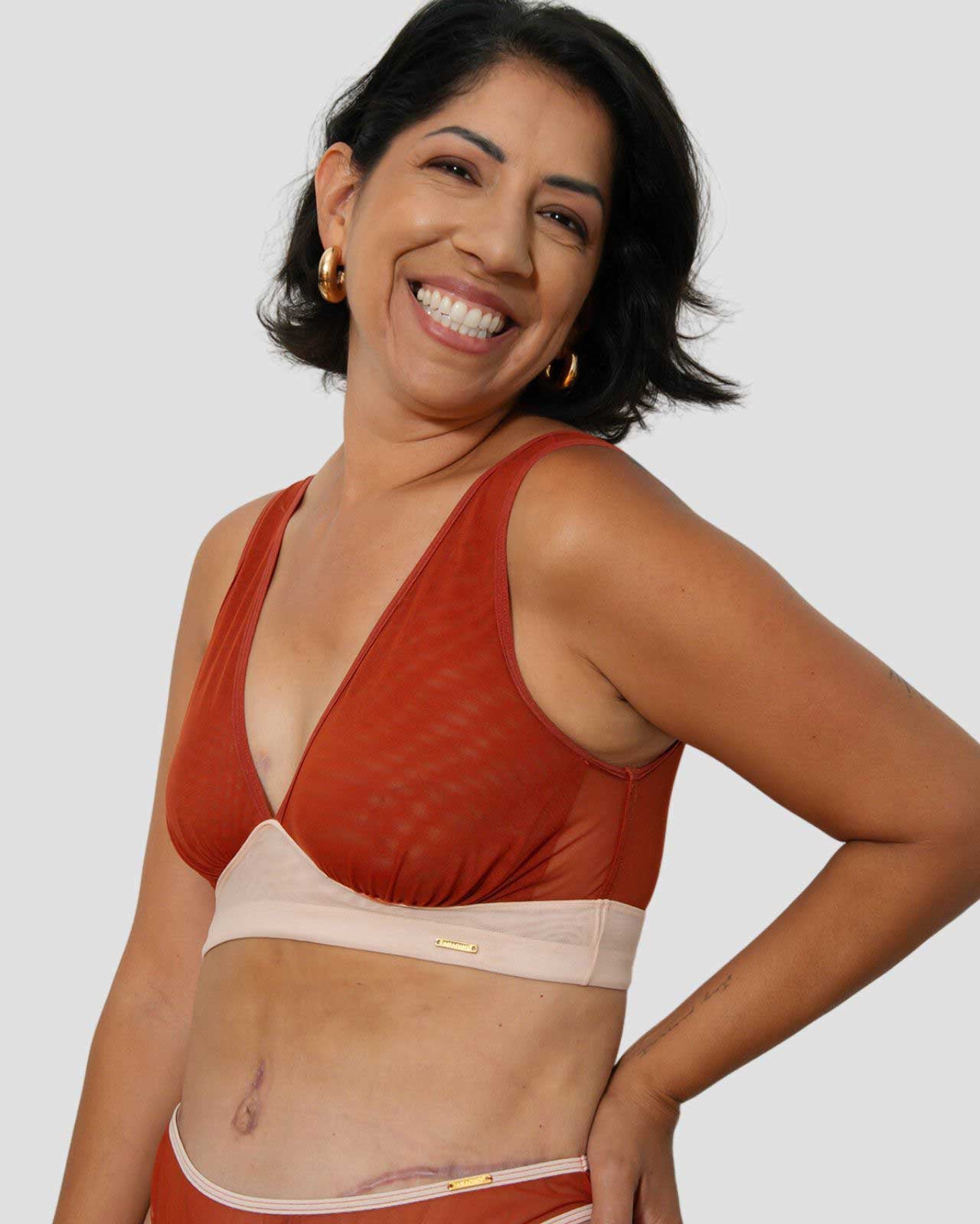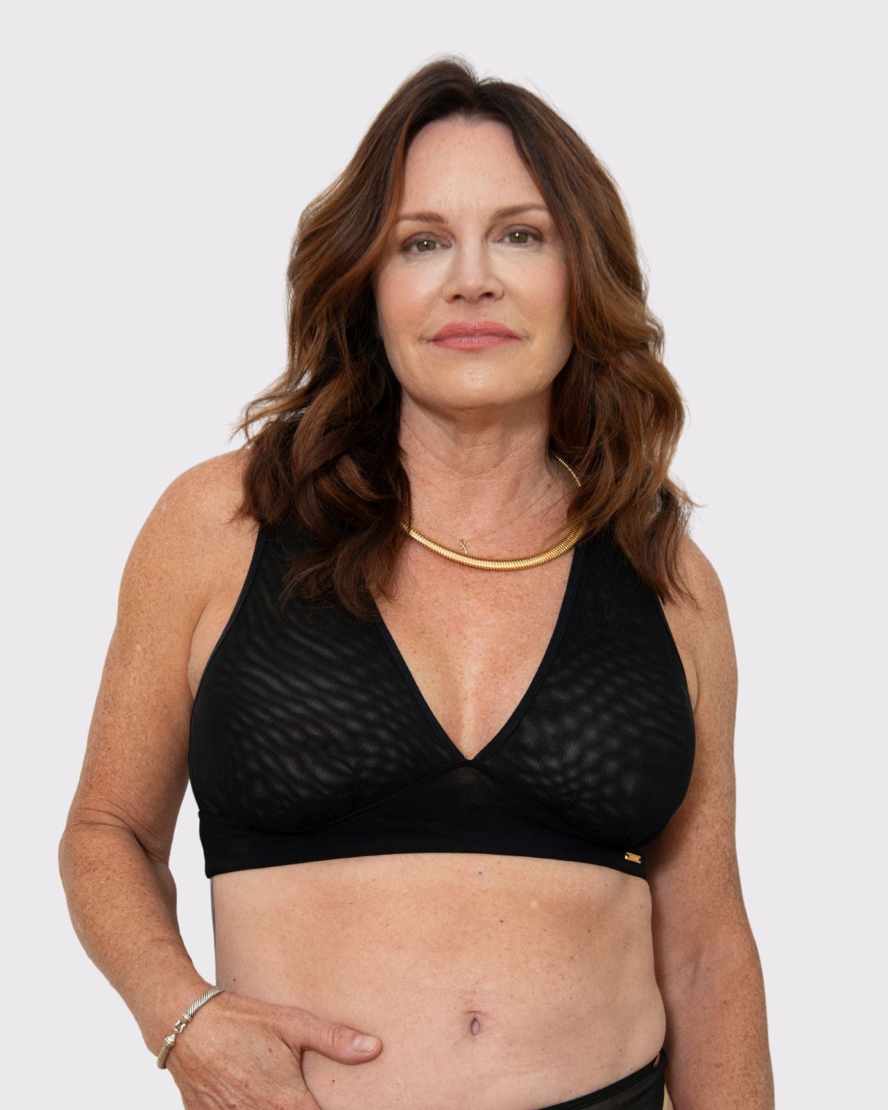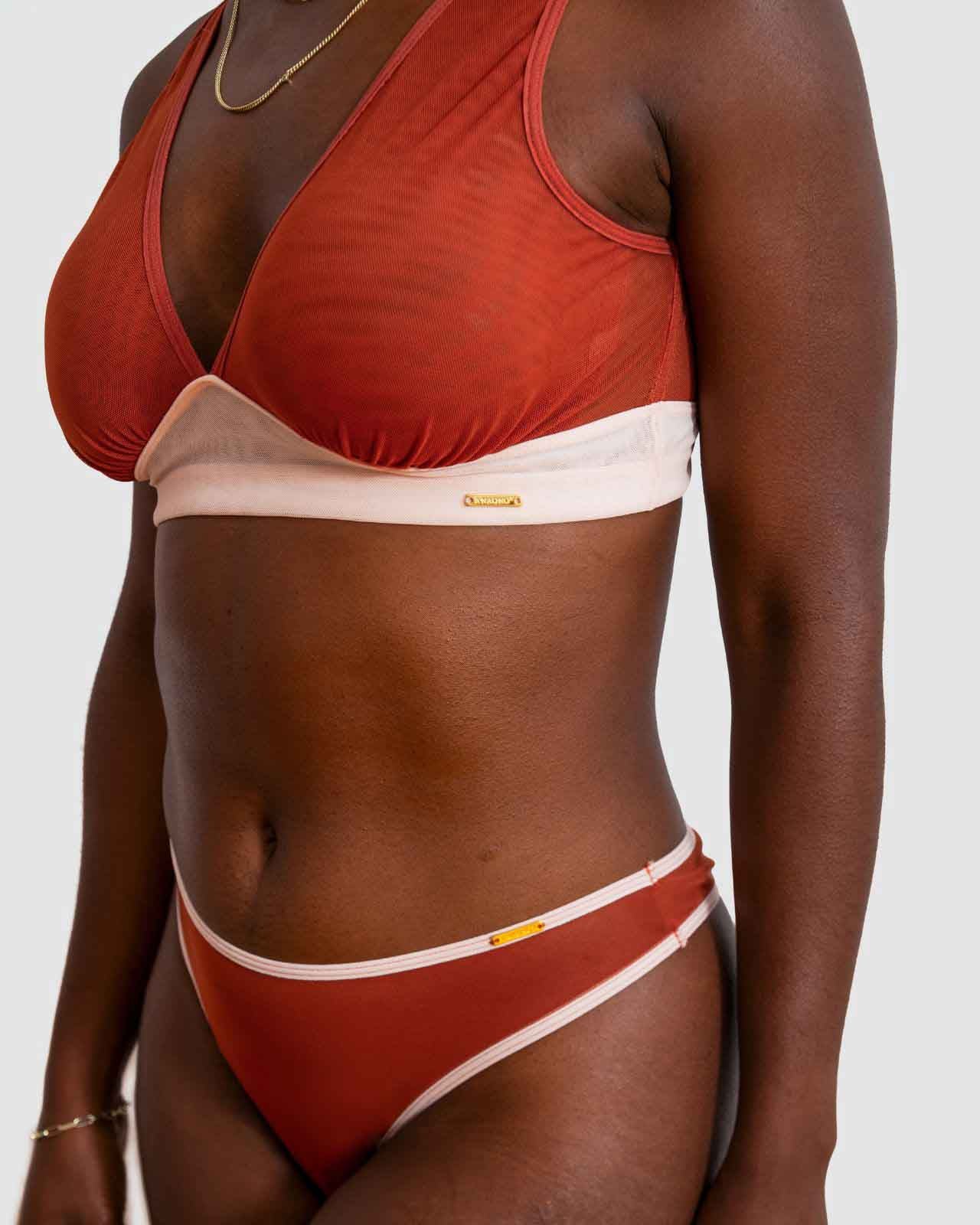 Black & Victoria Mesh Keyhole Bralette with the matching Mesh keyhole brief flat lay image Black & Victoria Mesh Keyhole Bralette with the matching Mesh keyhole brief on implants model